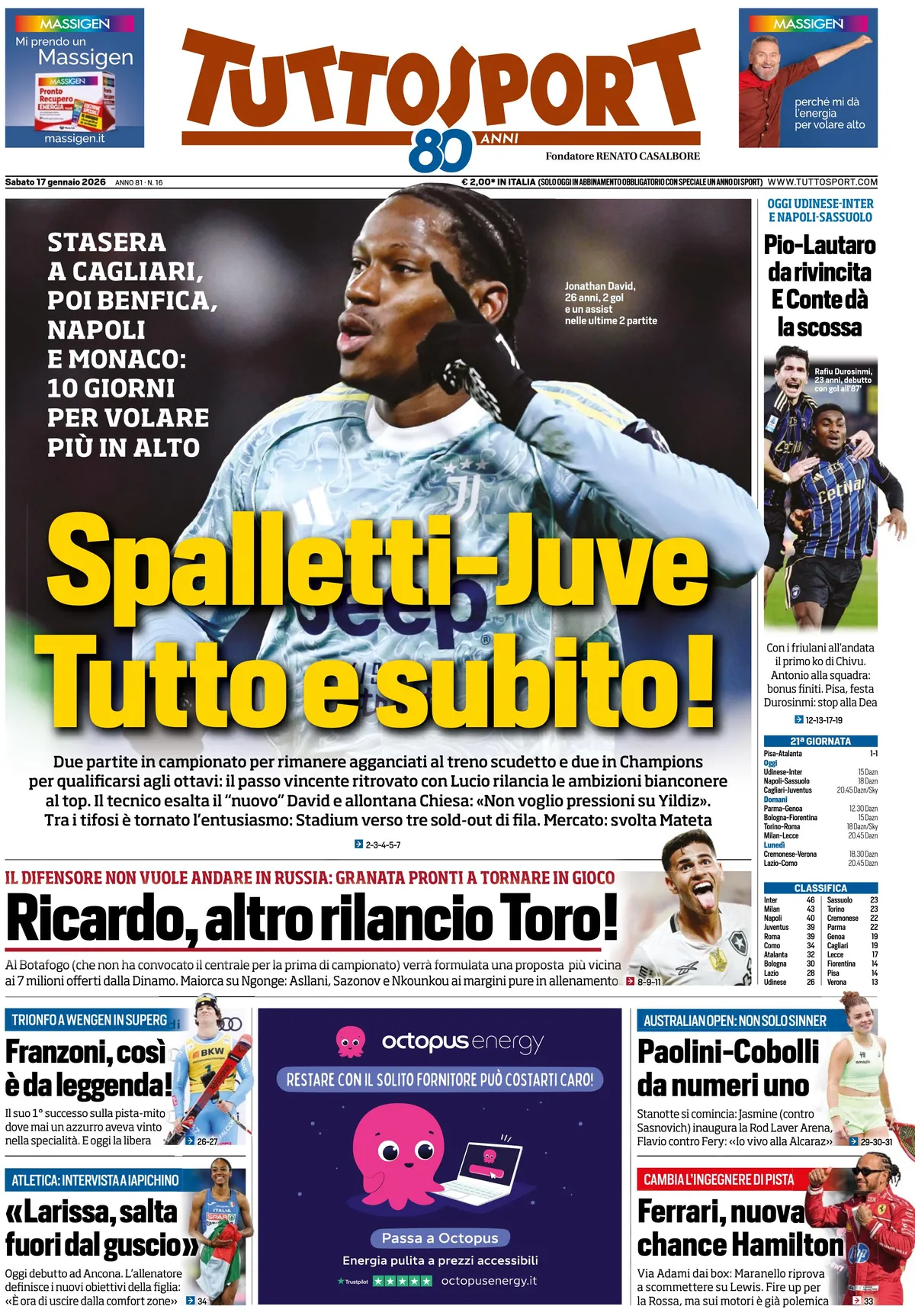 Two league games to remain attached to the Scudetto train and two in the Champions League to qualify for the Round of 16. The winning pathway rediscovered with Lucio relaunches the Bianconeri’s ambitions. The coach praises the ‘new’ David and pushes Chiesa away: ‘I don’t want to put pressure on Yildiz.’ Fans are enthusiastic again: Stadium towards three consecutive sold out. Market: Mateta breakthrough.